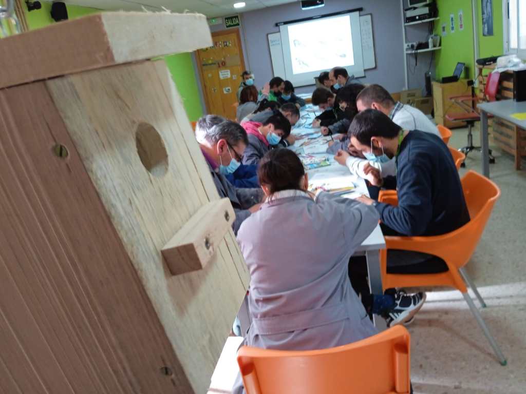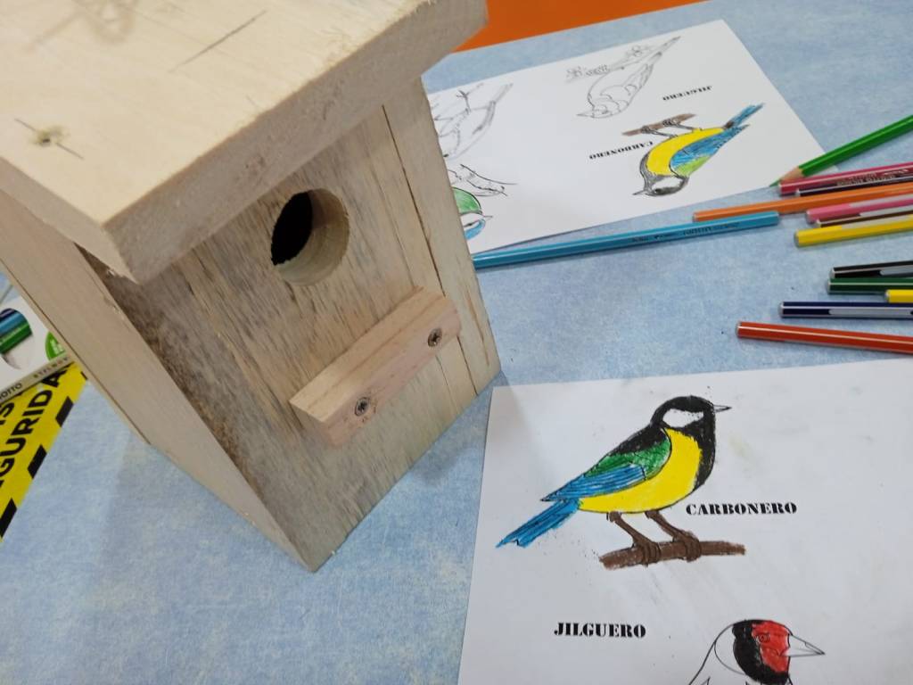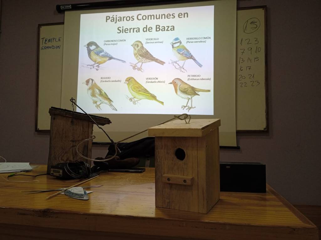 Por un lado se está realizando un proyecto educativo donde personas de la Asociación Pro-Discapacitados Psíquicos “Jabalcón” (Baza) están aprendiendo más sobre las aves que viven en el Parque Natural Sierra de Baza. En este “Curso de ornitología adaptado” estamos realizando, desde escuchas grabaciones sonoras para aprender los cantos de las aves a coloreando dibujos de pájaros para entrenarnos en su identificación. En breve realizaremos salidas a la sierra para disfrutarlas en vivo y en directo y probar nuestras nuevas cajas nido. Estas las hemos diseñado y empezado a producir en el proyecto, son unos nidales para paseriformes realizándose totalmente con madera reciclada de palet. La fabricación se hace íntegramente con personal del centro ocupacional Jabalcón. Es un producto con alto valor añadido al favorecer la biodiversidad de las aves y al apoyar una labor social. En el Encuentro de Voluntariado Ambiental realizaremos la presentación oficial de las cajas nido, las cajas de diversidad.