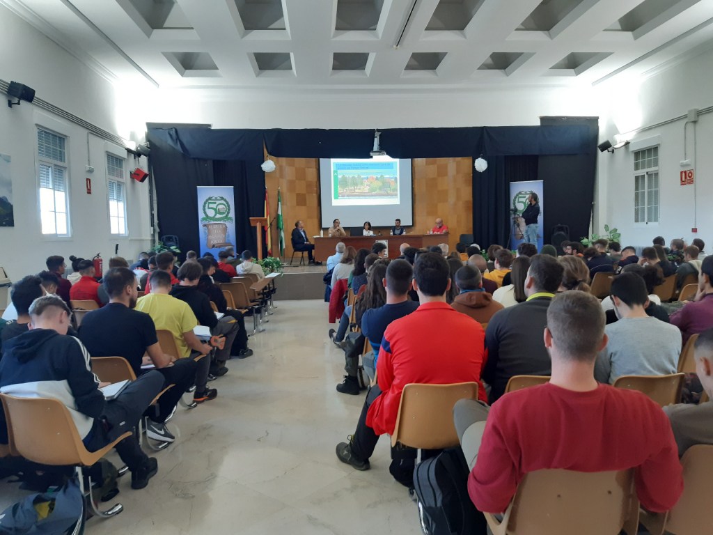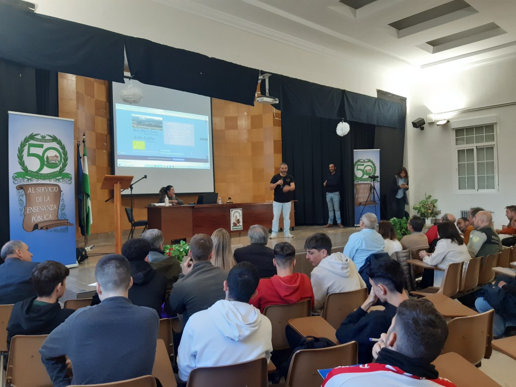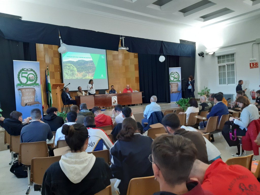 El salón de actos del Instituto de Enseñanza Secundaria Emilio Muñoz (Cogollos Vega), al que agrademos su acogida y atención durante la jornada, se llenó.