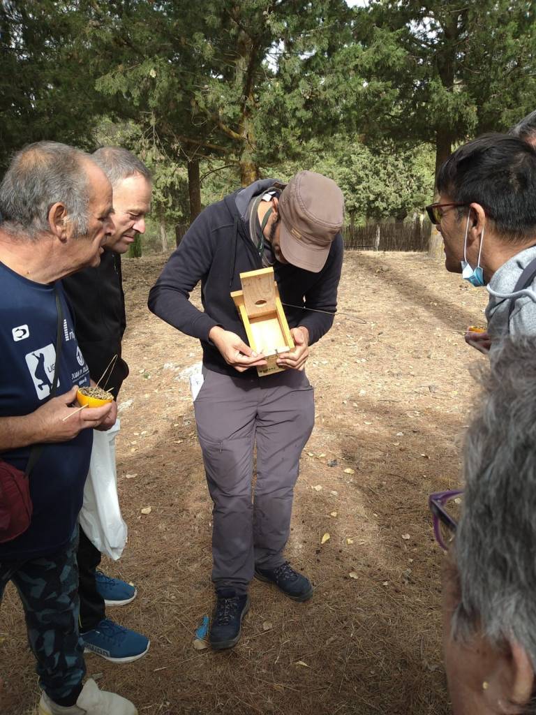 En esta jornada creamos, además, algunos comederos para aves, no muchos, pues no queremos generar impronta, ni dependencia en estos animales. Nuestro objetivo era aumentar simbólicamente los recursos alimenticios disponibles para los pájaros, los cuales, pueden ser escasos después de la sequía que estamos viviendo y de cara a un invierno que está por llegar. Una acción pro-ambiental y con objetivos de educación-sensibilización.